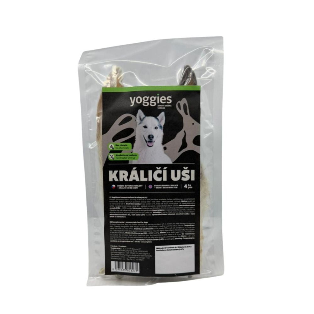 Yoggies Sušené žvýkací pamlsky - Králičí uši se srstí 4ks